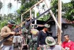 Nampak beberapa Prajurit Satgas TMMD ke-105 juga membantu kegiatan bedah rumah, Tepatnya dirumah Keluarga Robby Mangimbulur dan rumah Keluarga Kamasi Mandak di RT 1 Kelurahan Duasudara.