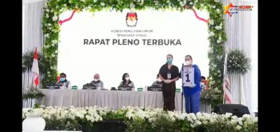 Patuhi Protokol Covid-19, Pengundian Nomor Urut di KPU Minut Super Ketat Minut|24 September 202025 September 2020by Jeane Rondonuwu SULUTDAILY|| Minut– Komisi Pemilihan Umum Minahasa Utara (KPU Minut) melaksanakan Rapat Pleno