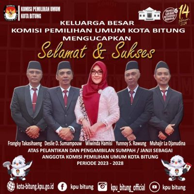Frangky Pimpin Rapat Pleno Pemilihan Ketua KPU, Deslie Terpilih Kembali Bitung, Politik|30 June 202316 July 2023by redaksi sd Foto – Anggota KPU Kota Bitung Periode 2023 – 2028.