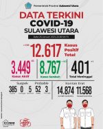 ” Saat ini pasien yang terkonfirmasi positif yang sementara dalam perawatan sebanyak 3.449 Orang sementara total keseluruhan kasus positif sudah mencapai 12.617 Orang,” kata Kumendong di dampingi dr Steaven Dandel MPH.