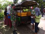 SULUTDAILY//Pati – Suparno (40), penjual ikan segar keliling asal Juwana Pati, akhir-akhir ini ramai diserbu pembeli terutama ibu-ibu manakala berjualan dilokasi TMMD Reguler ke-111 Kodim Pati di Desa Tamansari, Kecamatan, Jaken, Kabupaten Pati. Ia terlihat gembira, pasalnya jalan yang menghubungkan Desa Tamansari menuju Desa Sumberarum Kecamatan Jaken akan segera di betonisasi, Senin (07/6/2021).