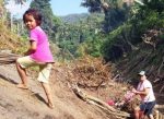 Sejumlah anak-anak dari terlibat langsung membantu orang tuannya dalam pelaksanaan kerja bakti pembersihan kampung, untuk sambut TMMD 105 dibuka, (8/7/2019).