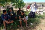 Disela istirahat pengerjaan rabat beton, Serka Sugino memanfaatkan waktu untuk melaksanakan komsos dengan masyarakat.