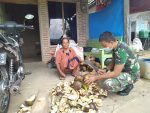 Salah satu anggota satgas TMMD Serda Wisnu menyempatkan waktu untuk komsos dan silaturahmi dengan warga yang panen Siwalan Sumini (61) warga Desa Tamansari, Rt.06/rw.02, Kecamatan Jaken, Kabupaten Pati, sebagai bentuk wujud nyata bahwa TNI berguna dan bermanfaat bagi warga dan masyarakat Desa sekitar sasaran TMMD.