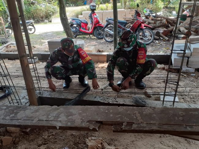 Anggota Satgas TMMD Belajar Membetulkan Alat Bajak Sawah Milik Warga