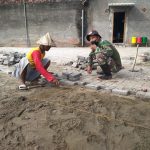 Selain merelakan dirinya menjadi asisten pemasangan batako, anggota TNI tersebut juga nampak begitu cermatmemperhatikan tahap demi tahap cara pemasangan lantai batakonya. Ternyata dia berharap bisa belajar dari apa yang dilakukan oleh warga tersebut.