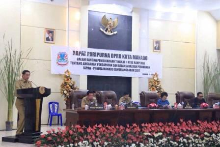 Dalam sambutannya, Walikota GSVL berterima kasih kepada DPRD Manado yang telah bekerja keras dan bekerja cerdas untuk menuntaskan Ranperda APBD-P Kota Manado Tahun Anggaran 2017.