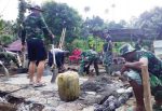 SULUTDAILY|| Bitung – TNI Manunggal Membangun Desa (TMMD) ke-105 Kodim 1310/Bitung bersama masyarakat Kelurahan Duasudara Kecamatan Ranowulu bahu membahu gotong royong merehab Rumah Keluraga Robby Mangimbulur, (11/7/2019).