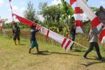 Para kawula muda Desa Nglengkir langsung berbaur dengan warga lain, membantu TNI membersihkan lapangan, diantaranya membantu mengangkat bambu yang bakal dipergunakan untuk pemasangan umbul-umbul.