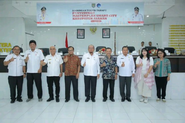 SULUTDAILY || ASAHAN – Bupati Asahan melalui Sekretaris Daerah membuka Bimbingan Teknis Tahap I Penyusunan Masterplan Smart City Kabupaten Asahan di Aula Melati Kantor Bupati, Rabu (05/07/2023). Tampak hadir Asisten II, Asisten III, Staff Ahli, Plh Kadis Kominfo, OPD, Kabag dan Peserta Bimtek yang berasal dari berbagai kalangan.