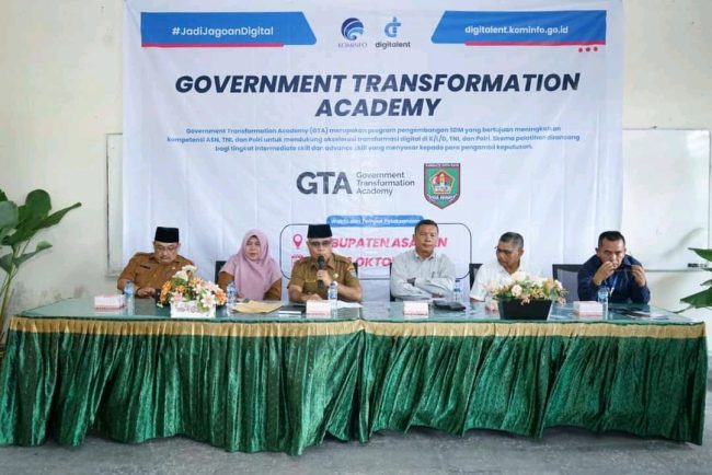 SULUTDAILY|| ASAHAN – Bupati Asahan H. Surya Bsc melalui Asisten Bidang Perekonomian dan Pembangunan Setdakab Asahan Ir. Oktoni Eryanto, M. M. A di dampingi Kepala Dinas Ketenagakerjaan Kabupaten Asahan, Sekretaris Kominfo Asahan, Perwakilan, BBPSDMP Kominfo Medan, Perwakilan Rektor Universitas Asahan, Kabid Pembinaan dan Penempatan Tenaga Kerja Edhie Catur Prayitno, SH, MM, membuka pelatihan Government Transformation Academy (GTA) sebagai bagian dari Digital Talent Scholarship (DTS) Kementerian Komunikasi dan Informatika (Kemenkominfo) Republik Indonesia yang bertempat di aula gedung Fakultas Ekonomi Universitas Asahan Selasa, (3/10/2023).