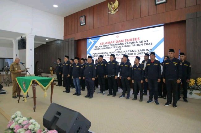 SULUTDAILY || ASAHAN – Berdasarkan Surat Keputusan Bupati Asahan Nomor 100.3.3.2-63-5-4.6 Tahun 2023, Bupati Asahan H. Surya, BSc mengkukuhkan Pengurus Karang Taruna Kabupaten Asahan Masa Bhakti 2023-2028 di Pendopo Rumah Dinas Bupati Asahan, Selasa (26/09/2023). Turut hadir mewakili Dandim 0208/Asahan, mewakili Kapolres Asahan, Asaisten Pemerintahan dan Kesejahteraan Rakyat, OPD, Camat se-Kabupaten Asahan, Ketua KONI Asahan, Ketua Karang Taruan Kabupaten Asahan, TP PKK Kabupaten Asahan, OKP dan tamu undangan lainnya.
