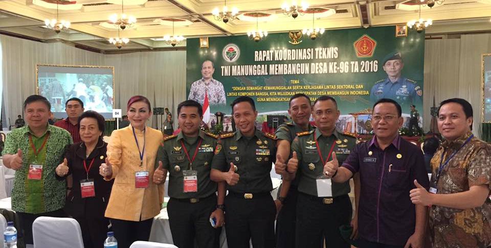 SULUTDAILY|| Minsel- Bupati Minahasa Selatan Christiany Eugenia Paruntu SE,menghadiri Rapat Koodinasi Teknis TNI Manunggal Membangun Desa (TMMD) Ke-95 TA 2016 yang dilaksanakan di Gedung Balai Prajurit Sudirman Jakarta Kamis (07/04/2016). Dalam rapat tersebut, Bupati Paruntu didampingi Ketua DPRD Jenny Paruntu Tumbuan, Sekda Danny Rindengan, Kepala BPMPD Benny Lumingkewas, Kesbangpol Alex Slat, Kabag Humas Franky Mamangkey.