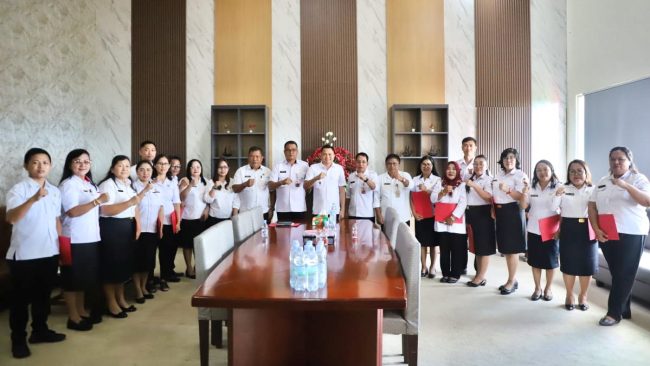 SULUTDAILY|| Ratahan – Bupati Minahasa Tenggara (Mitra) Ronald Kandoli resmi menyerahkan Surat Perintah Pelaksana Tugas (Plt) kepada 15 Kepala Sekolah di lingkungan Dinas Pendidikan Kabupaten Mitra.