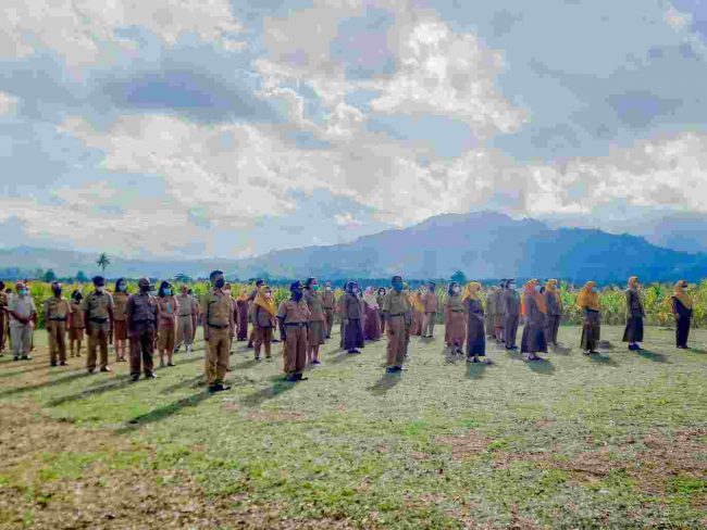 “Jadi, kalau dilantik dilapangan seperti ini, itu artinya tanda ‘Awas’. Tanda Awas kepada bapak dan ibu dan barusan saja dilantik, tunjukan totalitas dan loyalitas kalian, profesionalisme kalian sebagai guru, kewajiban kalian sudah kalian ketahui,” tegasnya.