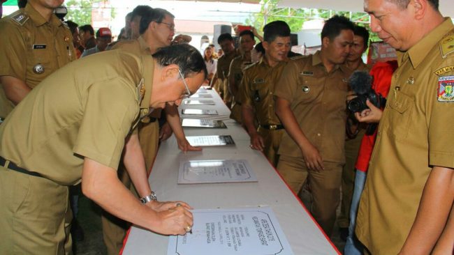 SULUTDAILY|| Tondano – Bupati Minahasa Ir Royke Octavian Roring MSi ikut menyambut kunjungan Kapolda Sulut IrjenPol DR R Sigid Tri Hardjanto SH MSi dan Ketua Bhayangkari Daerah Sulut Ny Nunuk Sigid Tri Hardjanto, (2/7/2019) di Polres Minahasa.