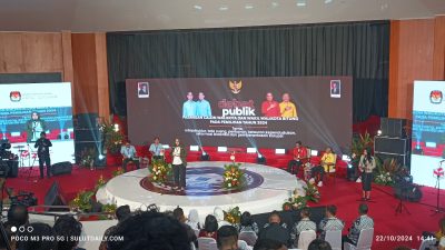 Foto-Wiwinda Hamisi saat Membawakan Sambutan KPU Bitung dan Membukanya Kegiatan Debat Publik Calon Walikota dan Wakil Walikota Bitung