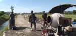 Sigap operator molen yang merupakan salah satu anggota Satgas memainkan mesin molennya Sertu Budi Waluyo (48) sambil menginjak kendali, kemudi diputarkan kearah pengusung, diawali dari air, semen berlanjut pasir dan koral. (24/06/21)