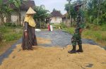 Tidak heran jika banyak dijumpai warga yang sedang menjemur padi hasil panennya. Hal itu tidak luput dari pantauan TNI Satgas TMMD TMMD untuk membantu warga guna meringan beban kerja mereka.