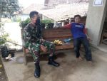 Terlihat sembari berteduh, Serda Sukarji mengunjungi rumah Bapak Darmin (46) warga Dukuh Pandahan RT.02/03, Desa Tamansari, Kecamatan, Jaken Kabupaten Pati, yang sehari-harinya bekerja sebagai buruh tani, Sabtu (19/6/2021).