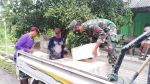 SULUTDAILY//Pati – Satgas TMMD reg 111 Kodim Pati saat ini bersama warga gotong-royong menurunkan batu kumbung yang didatangkan kembali untuk melanjutkan pembangunan rehab rumah RTLH milik Ngarji (71) yang terletak di Dukuh Pandahan, Desa Tamansari, Kecamatan Jaken, Kabupaten Pati. Sabtu (19/06/2021).