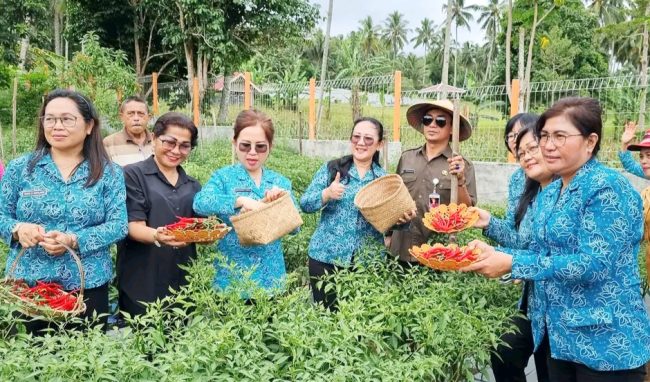 Ketua TP PKK Mitra dan jajaran didampingi Camat Tombatu Timur melaksanakan panen cabai di Desa Molompar Atas.