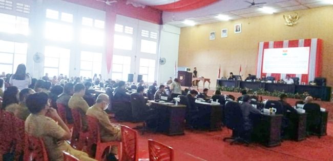 SULUTDAILY|| Ratahan – DPRD Minahasa Tenggara menggelar paripurna dalam rangka pembicaraan tingkat pertama atas Rancangan Peraturan Daerah (Ranperda) tentang Pertanggungjawaban Pelaksanaan APBD Tahun Anggaran 2021 serta Penyampaian Kebijakan Umum Anggaran (KUA) serta Prioritas Plafon Anggaran Sementara (PPAS) APBD TA 2023, Senin (20/6/2022) bertempat di gedung Sport Hall DPRD.