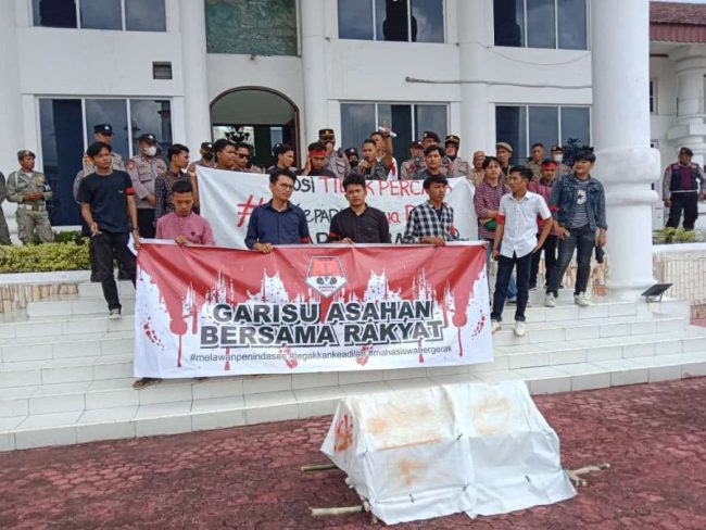 ASAHAN | SULUTDAILY |- Puluhan masa yang mengatasnamakan Generasi Aktivis Reformasi Indonesia Sumatera Utara (GARI-SU), geruduk kantor DPRD Asahan Jalan Jenderal Ahmad Yani Kisaran, Senin (20/02/2023) sekira pukul 10:30 Wib. Kedatangan mereka meminta dan mendesak agar Ketua DPRD Asahan, H. Baharuddin Harahap mundur dari jabatannya karena dinilai tidak profesional sebagai wakil rakyat.