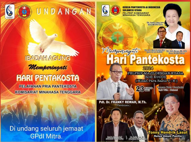 “Sebelumnya kami telah menyampaikan undangan ke masing-masing sidang. Oleh sebab itu mengajak kembali kepada seluruh gembala dan ibu/bapak rohani, pelayan-pelayan terlebih bagi seluruh jemaat GPdI se-Mitra untuk bersama-sama hadir dan menikmati mujizat Allah lewat ibadah peringatan hari pentakosta ini,” ajak THL.