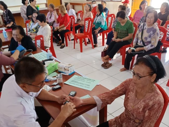“Proses yang kami lakukan antara lain pemeriksaan berat badan, tekanan darah, kadar gula darah, asam urat dan kolesterol pada lansia. Hal ini memiliki manfaat mendeteksi kondisi para lanjut usia dalam menjaga kesehatannya, serta memberikan motivasi,” ungkap dr Joseph.