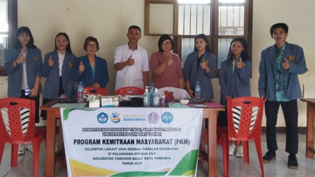SULUTDAILY|| Tomohon – Universitas Sam Ratulangi (Unsrat) Manado menggelar Program Kemitraan Masyarakat Klaster-2 (PKM-K2) Kelompok Lanjut Usia Dengan Masalah Kesehatan Tahun 2025 di Kelurahan Woloan Dua Kecamatan Tomohon Barat Kota Tomohon.