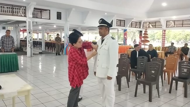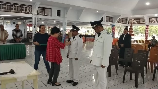 SULUTDAILY|| Sangihe-Penjabat Bupati Kabupaten Sangihe, dr.Rinny Tamuntuan , melantik dua penjabat Kapitalaung (Kepala desa) yaitu Kampung Lesabe I Kecamatan Tabukan Selatan dan Penjabat Kapitalaung Kampung Binala, Kecamatan Tamako, yang dilaksanakan di Pendopo Rumah Jabatan Bupati pada jumat (05/04/2024).