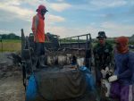 Mereka saling bantu mengangkat ember yang berisikan Adonan Cor, untuk dinaikan keatas Kendaraan roda tiga yang akan diangkut menuju tempat pengecoran jalan. Ternyata ember tetap jadi teman setia menemani anggota satgas TMMD dan masyarakat Desa Tamansari.