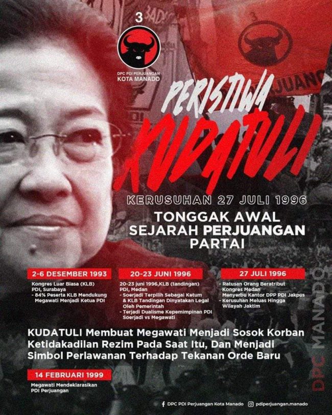 SULUYDAILY||Minsel- Peristiwa kelam kerusuhan 27 Juli 1996 yang disebut KUDATULI merupakan sejarah perjuangan yang tidak terlupakan bagi Partai Demokrasi Indonesia Perjuangan (PDIP).