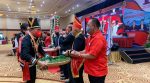 SULUTDAILy II Minut- Tradisi ‘Baselewir di Sosiru’ (membagikan kue tradisional menggunakan alat tapis beras) saat momen Hari Ulang Tahun ke 18 Kabupaten Minahasa Utara menjadi perhatian menarik bagi forum Rapat Paripurna DPRD dan para undangan yang hadir di Hotel Sutan Raja , Sabtu (20/11/2021) .