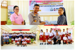 Disaat itu pula, usai memberikan sambutan dan himbauan, Kapolres Suryana, langsung menyerahkan alat belajar berupa buku sebanyak 620 llengkap dengan alat tulis kepada pengurus Yayasan Milania atas nama, SR Katarina Karepangan, S.JMJ.