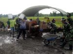 SULUTDAILY//PATI – Warga masyarakat Desa Tamansari, Kecamatan Jaken, Kabupaten Pati, bersinergi dan bergotong royong bersama sama anggota Satgas Kodim 0718/Pati, mengangkut matarial batu split, semen dan pasir untuk di masukin ke dalam molen, pembuatan bahan cor sebelum dilakukan pengecoran jalan.