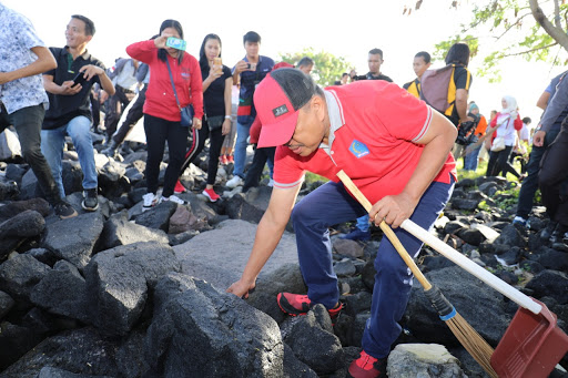 SULUTDAILY|| Manado- Hari Peduli Sampah Nasional (HPSN) 2019 di Sulawesi Utara diperingati dengan kerja bakti massal yang dipimpin Gubernur Olly Dondokambey, SE dan Ketua Umum Wanita Selam Indonesia (WASI) yang juga istri Kepala Kepolisian RI (Kapolri), Tri Suswati Tito Karnavian di Manado, Sabtu (23/02/2019) pagi. Kerja bakti massal yang melibatkan ribuan orang termasuk ASN dan THL Pemprov Sulut, anggota TNI dan Polri ini membersihkan sampah-sampah berserakan di lima titik sasaran muara sungai dan pantai.