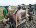 Sertu Susilo yang tergabung dalam TMMD Reguler ke 111 Kodim 0718/Pati, pagi sebelum kegiatan di mulai mengecek mesin molen penggerak agar pada saat bekerja alat tidak mengalami gangguan.