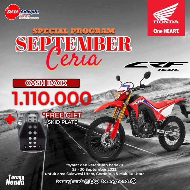Tak hanya menghadirkan display motor yang kece, Honda juga menawarkan promo spesial berupa cashback hingga Rp 1.000.000 bagi konsumen yang melakukan pembelian selama periode pameran berlangsung.