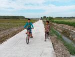 Sambil bersepeda santai dipagi hari, dua anak tersebut terlihat sangat riang menikmati pemandangan khas pedesaan dan merasakan mulusnya jalan yang ia lalui yang berbeda sekali dengan kondisi sebelum dibangun.