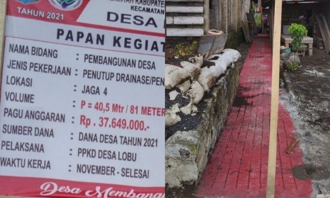 Diakhir tahun ini, Pemdes Lobu dibawah nahkoda Hukum Tua Hence Taogan terus memaksimalkan pembangunan infrastruktur desa melalui program kegiatan dana desa (DD) tahap III tahun 2021.