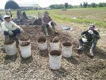 SULUTDAILY//PATI – Anggota Satgas TNI Manunggal Membangun Desa ( TMMD ) Reguler Ke-111 Kodim 0718/Pati, Desa Tamansari Kecamatan Jaken, Kabupaten Pati, sedang melaksanakan istirahat sejenak melepas lelah setelah memasukan batu split ke dalam Ember, dengan menunggu kelompok lain bagian mengangkut ember ke mesin molen.