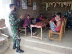 Serda Sukarji anggota Satgas TMMD geleng-geleng kepala sembari mengelus dada, ketika melihat beberapa orang warga yang sedang duduk-duduk diwarung kopi milik Ibu Sutini (39) tanpa memakai masker, Minggu (20/6/2021).