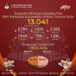 SULUTDAILY|| Infografis – KPU Sulut menetapkan Rekapitulasi jumlah pemilih disabilitas DPT Pilkada Provinsi Sulawesi Utara tahun 2024 dalam Rapat Pleno Terbuka di Four Points by Sheraton Manado, Minggu (22/09/2024).