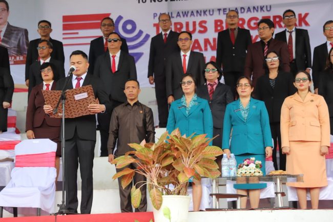Mengakhiri amanatnya, Bupati Ronald Kandoli mengajak seluruh elemen masyarakat untuk terus menyalakan semangat perjuangan dalam membangun daerah.