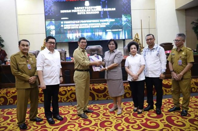 Sebelum meninggalkan ruangan C3 Kapolda menerima cinderamata dari Wakil Walikota dan memberikan pesan digital, yang tertulis ‘lanjutkan dan tingkatkan Semangat Pelayanan masyarakat dengan Polda Sulut. (Jr)