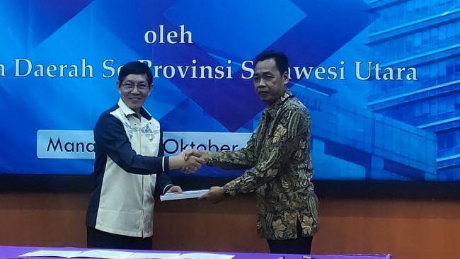 Sebelum meninggalkan ruangan C3 Kapolda menerima cinderamata dari Wakil Walikota dan memberikan pesan digital, yang tertulis ‘lanjutkan dan tingkatkan Semangat Pelayanan masyarakat dengan Polda Sulut. (Jr)