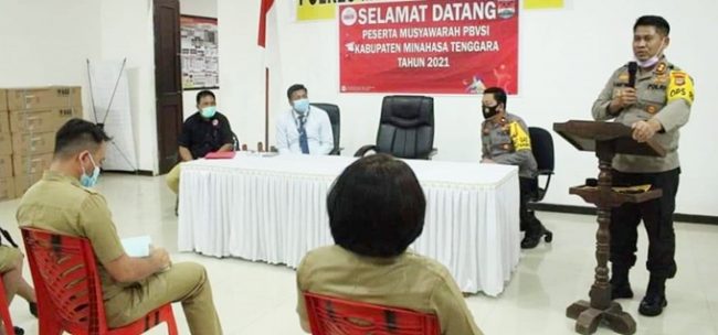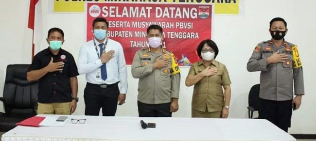 SULUTDAILY|| Ratahan – Persatuan Bola Volli Seluruh Indonesia (PBVSI) Kabupaten Minahasa Tenggara (Mitra), Senin 1 Maret 2021 bertempat di Aula Polres Mitra melaksanakan Musyawarah Kabupaten (Muskab) dalam rangka memilih kepengurusan yang baru periode 2021-2025.