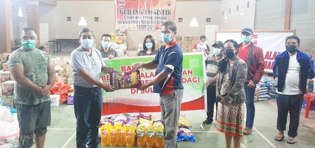 Penyerahan bantuan diserahkan langsung perwakilan pengurus KBS Sulut ke Pemkab Mitra melalui pihak BPBD yang diwakili Kabid Bantuan Bencana Alam Ricklof Mamahit, di Posko Bencana Desa Pangu Raya, Minggu 3 Oktober 2021.